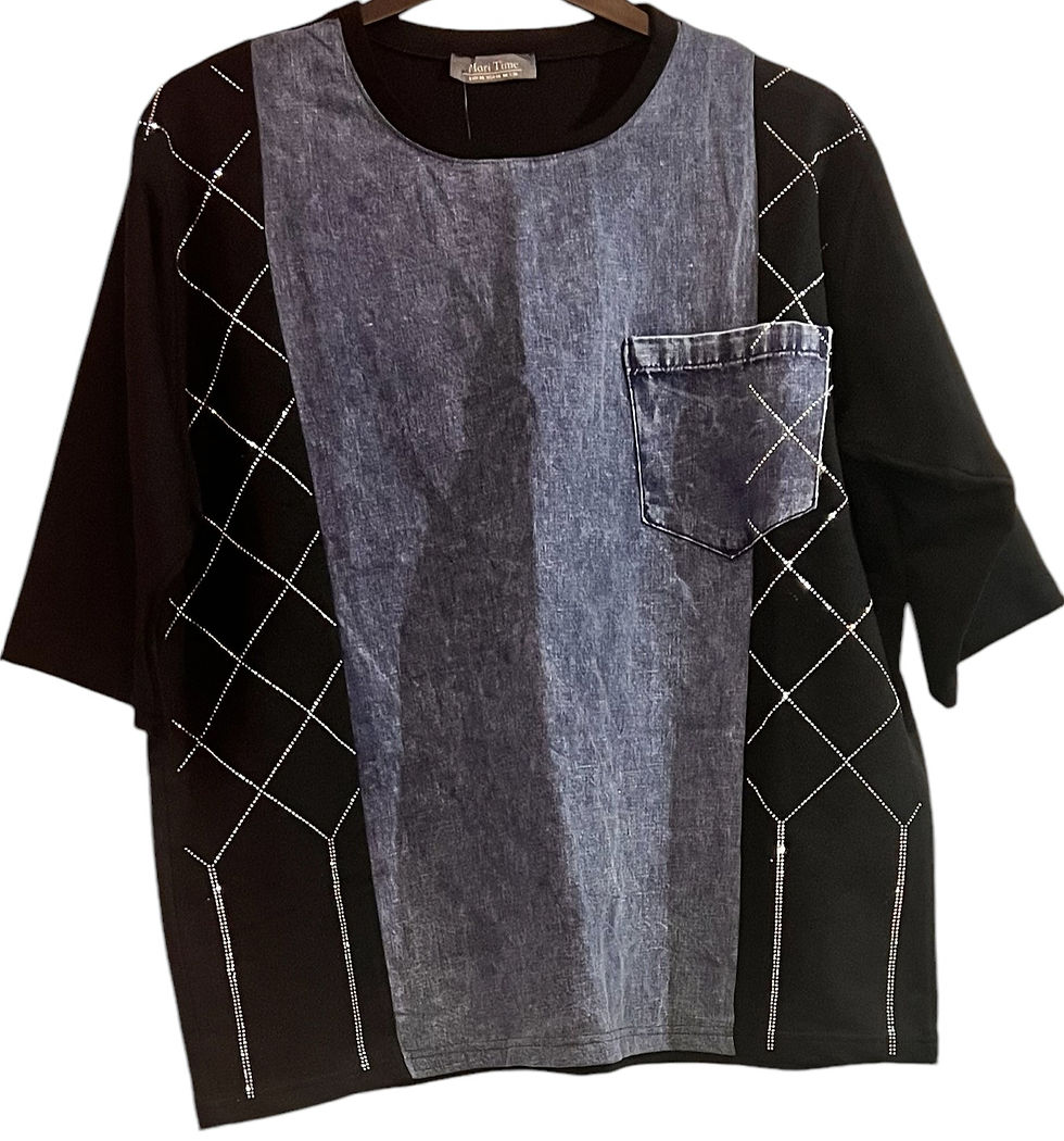 Women’s Contracting Half Denim and Fabric Bling Co-Ord Set