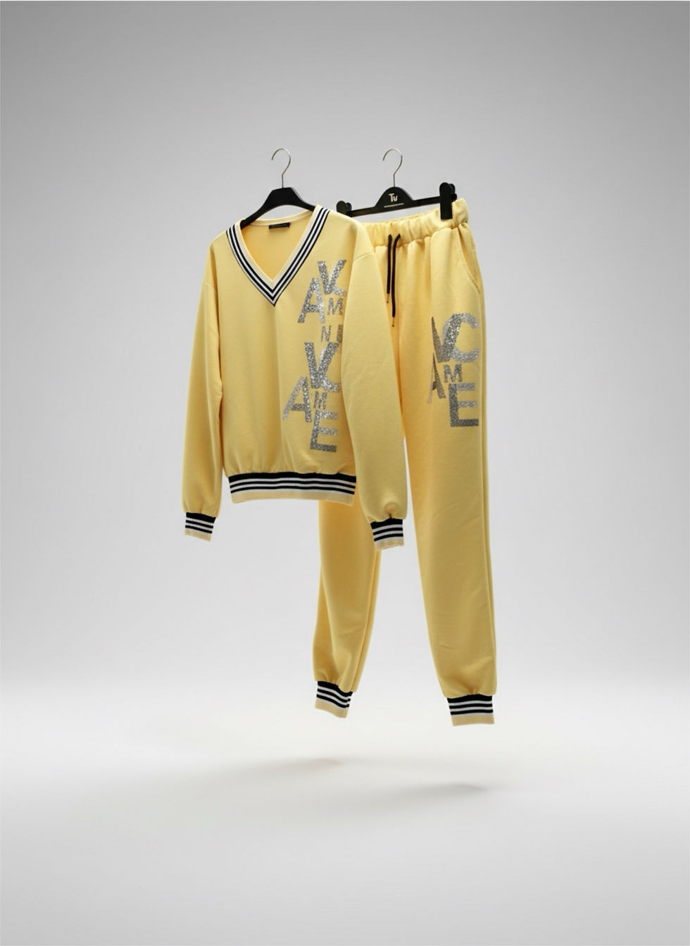 Tracksuit 2Pcs Kintwear Yellow Diamanté Detail Set Womenswear