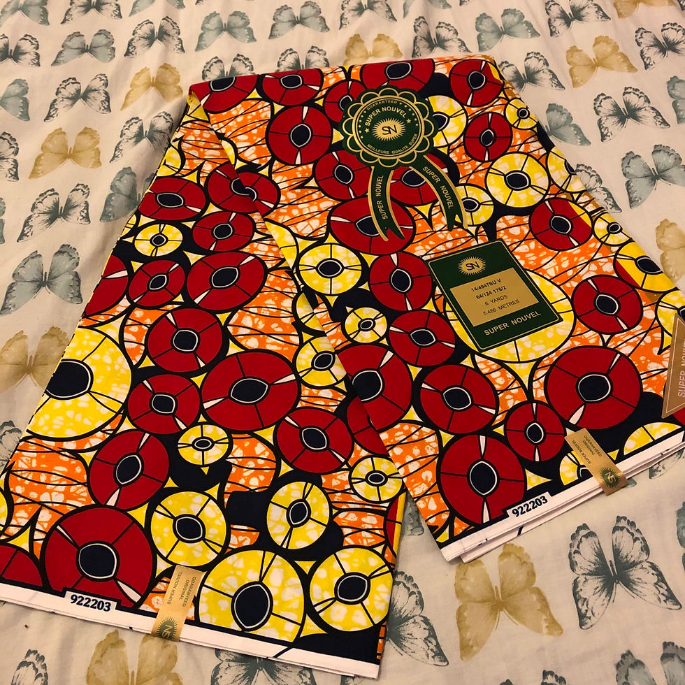 Red/Yellow Multi Circle Africa Polyester Wax Print Fabric